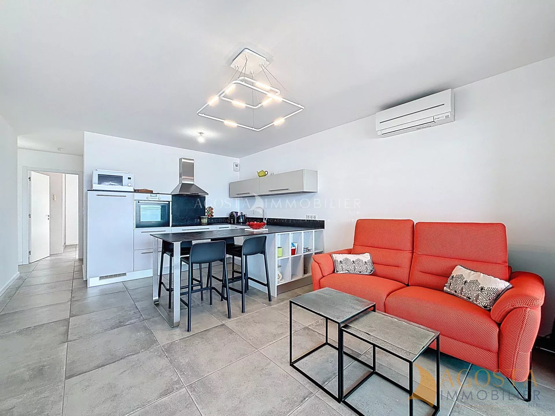L’appartement séduit dès l’entrée par ses belles prestations et son ambiance contemporaine. Vous y découvrirez une cuisine ouverte moderne et parfaitement intégrée, qui crée un espace convivial et fonctionnel, idéal pour recevoir. La pièce de vie prolongée par une terrasse à la vue mer panoramique, invite à profiter pleinement du climat méditerranéen, du calme environnant et des couchers de soleil.