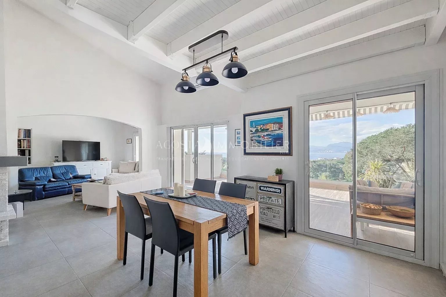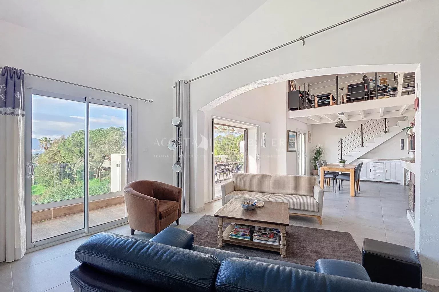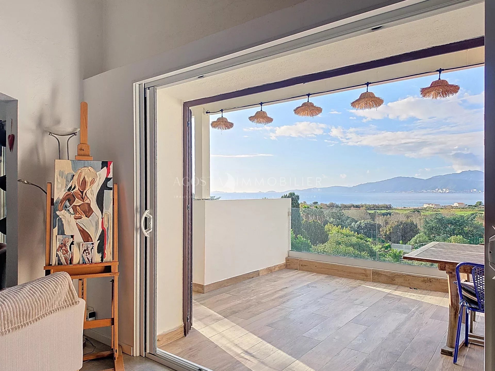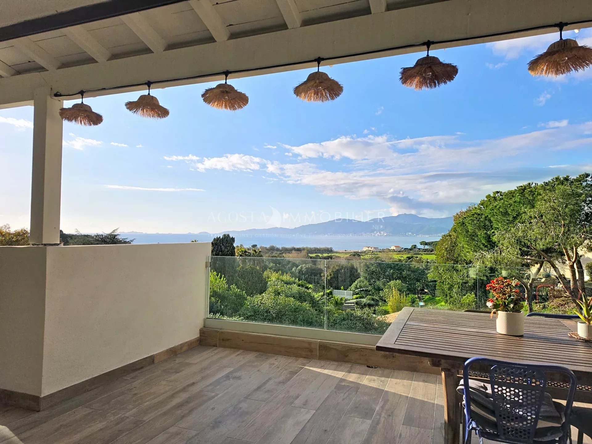 Les espaces de vie séduisent par leur générosité et leur confort, agrémentés d’une cheminée qui apporte une atmosphère chaleureuse et authentique. Ils s’ouvrent sur de belles terrasses aux expositions variées, invitant à profiter pleinement de chaque moment de la journée. Depuis l'intérieur comme de l'extérieur, vous pourrez profiter d'une vue magnifique sur la mer, les Îles Sanguinaires et l’ensemble de la baie d’Ajaccio, offrant un cadre aussi apaisant qu’inspirant.
