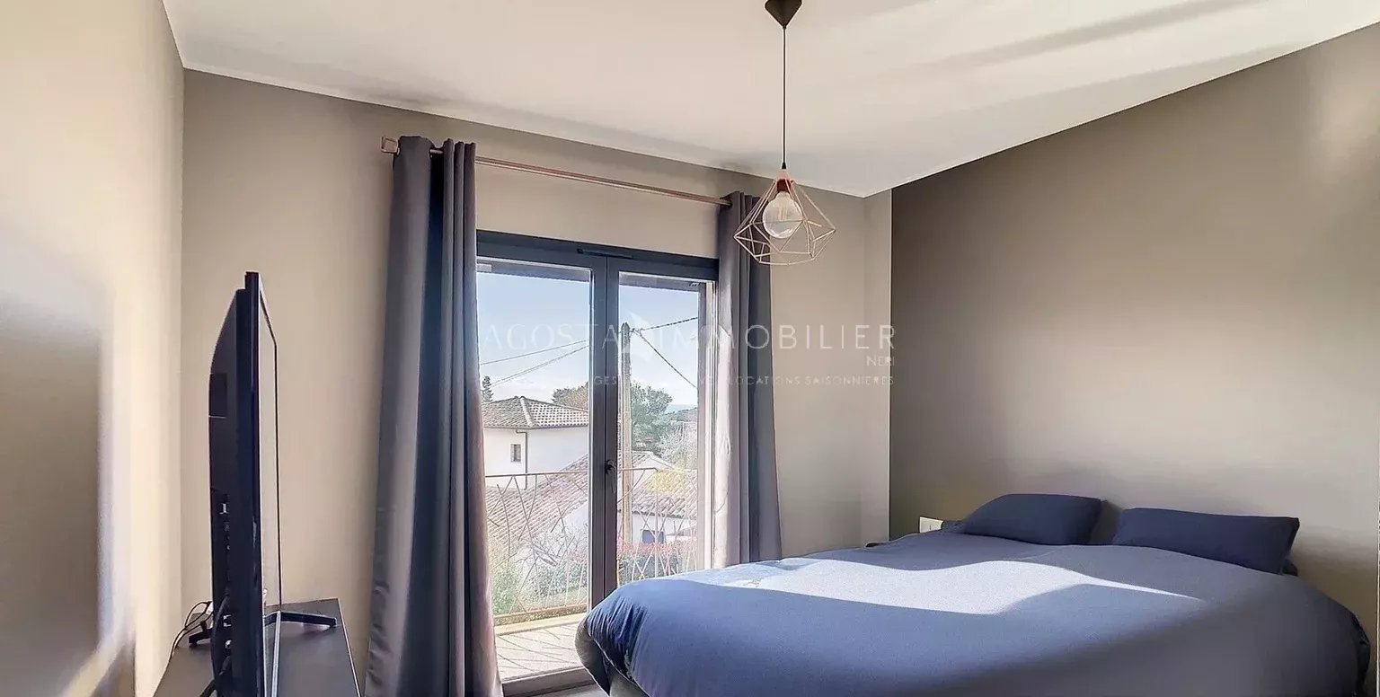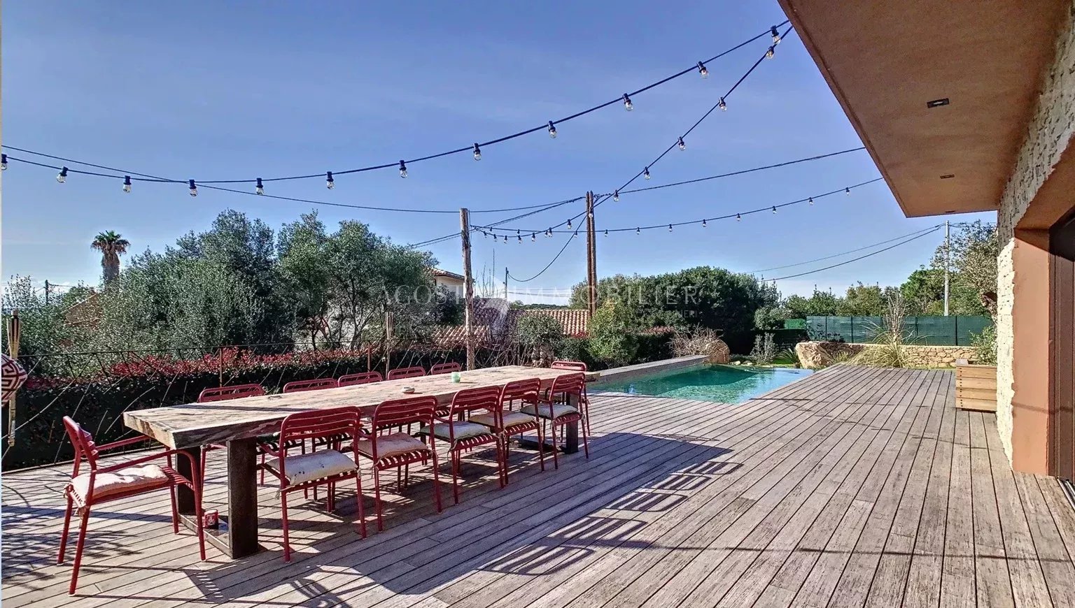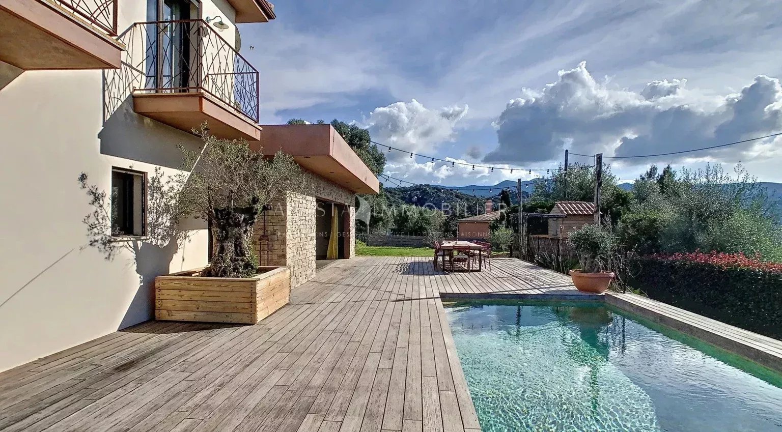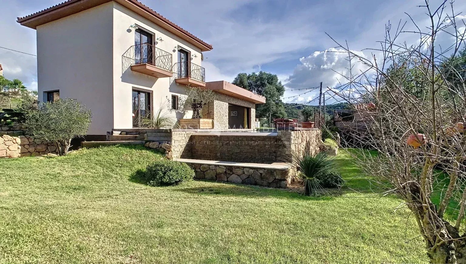 L’agence Agosta Immobilier a le privilège de vous présenter cette superbe villa contemporaine, située au cœur d’un hameau très prisé de la Rive Sud d’Ajaccio, à quelques minutes à pied de la plage du Rupione.