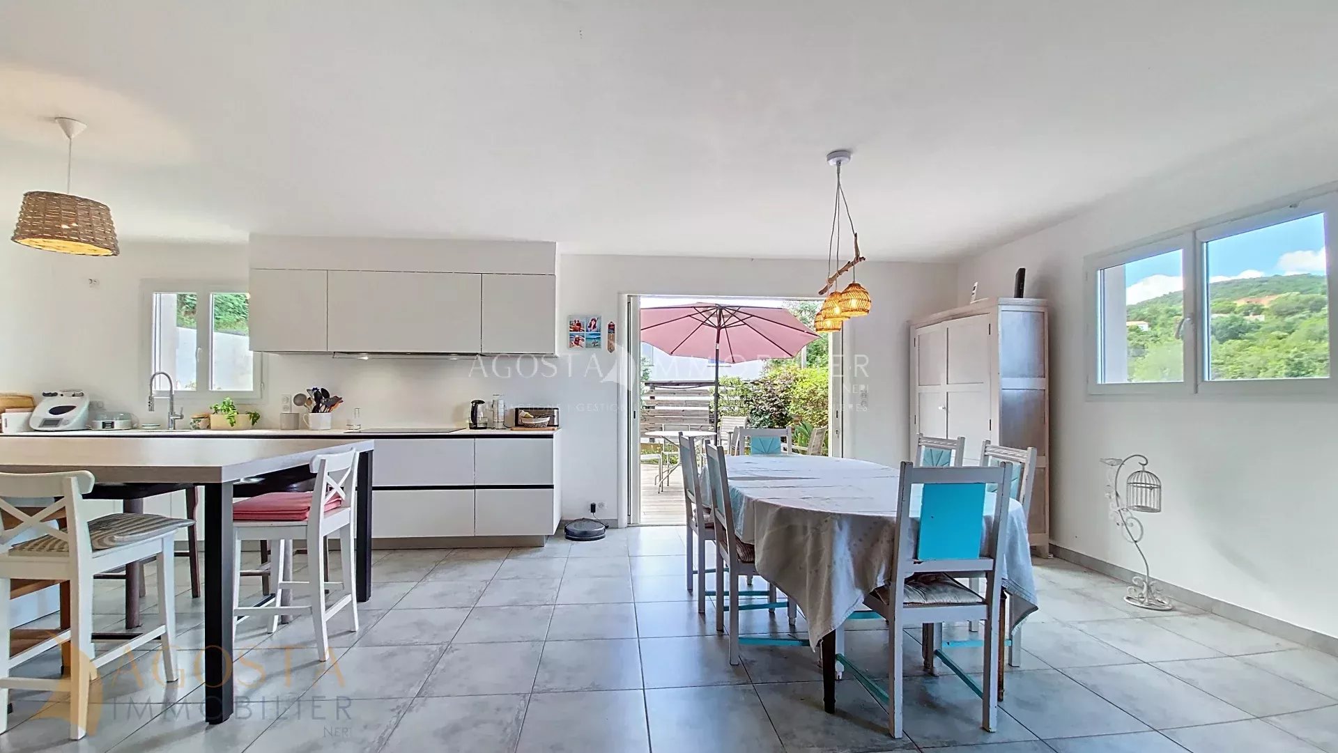 Cette villa récente de 2015 est composée d'un grand séjour avec cuisine américaine (marque Snaidero) et son cellier, 2 chambres avec placards, une salle de bain et une suite parentale avec salle d'eau/wc et un dressing. Une terrasse carrelée exposé plein Sud avec piscine Hors sol vous permettra d'apprécier au mieux votre vie sur la Rive Sud d'Ajaccio.